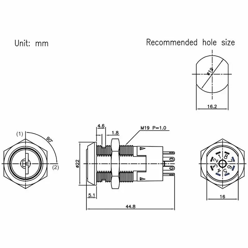 端子脚数量从3~8支依规格需求变化,有2~5段多段位设计,钥匙抽出位置多款变化,各种型号与功能请参阅规格表。钥匙抽插,电讯功能,短暂接触都能依照客端需求做调整。S2032加装瞬时接触的弹簧装置,可以在指定段位让钥匙回弹復位。锁头用六角螺母或插片安装固定,可依客户需求增加加工工序,如:焊线、雷雕、打号,.....等等,在便于生产的数量基础下亦可依客户需求客制规格。